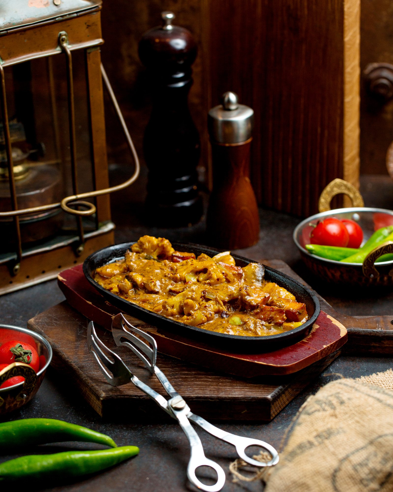 The curry is thick, aromatic, and garnished with fresh coriander and red chilli for added flavour.